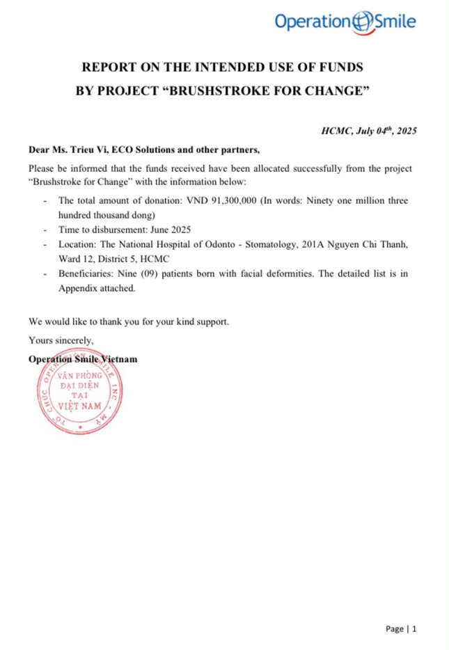 This entire fund was donated to assist the medical care for nine individuals with facial deformities at the National Hospital of Odonto – Stomatology in Ho Chi Minh City.